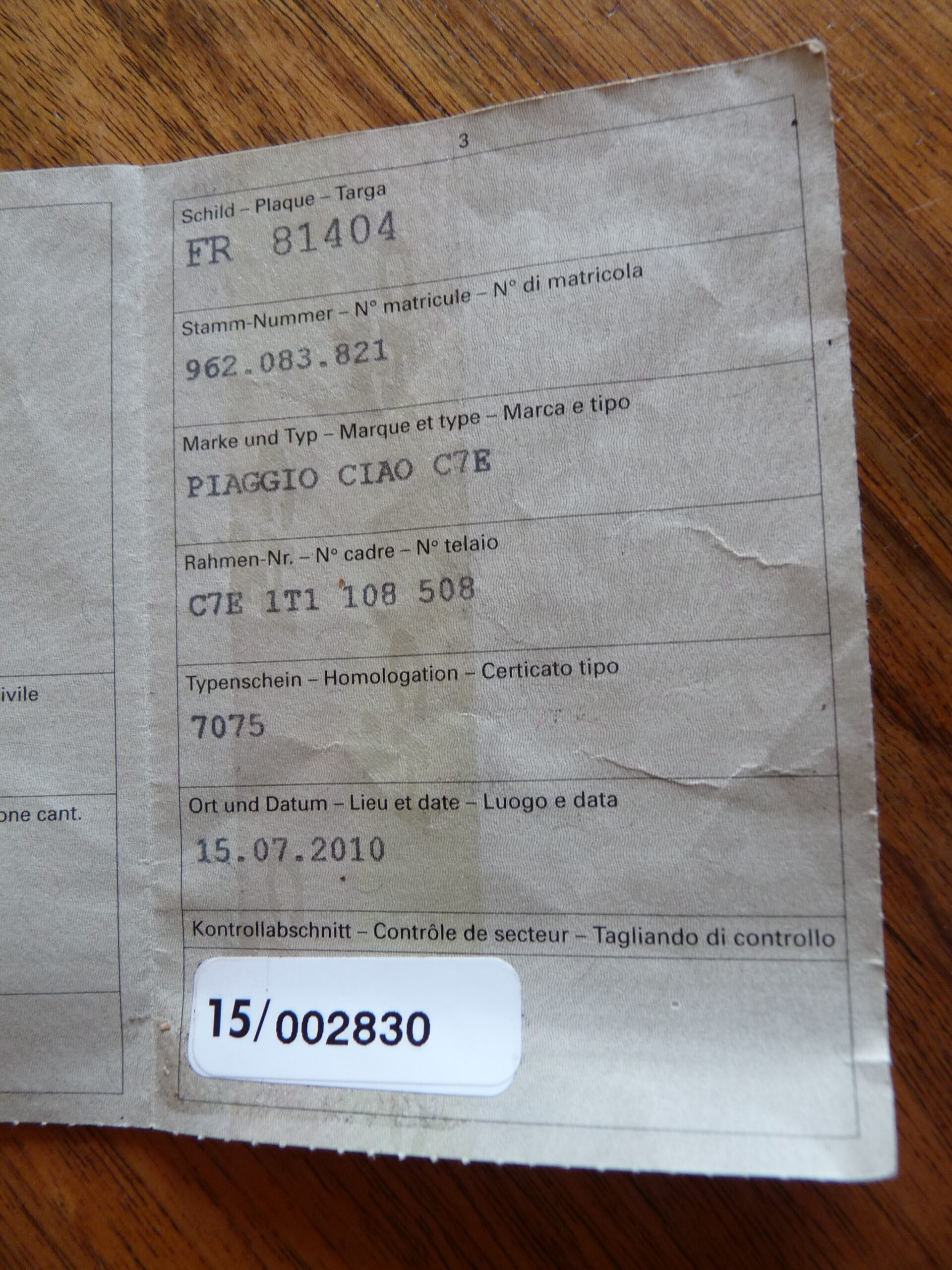 Piaggio Ciao CH 7075, C7E 1T1 108 508
